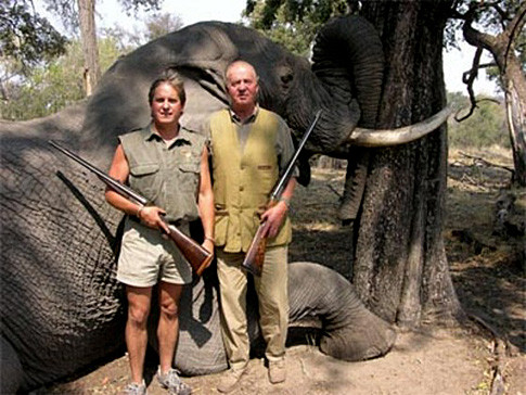 Enquanto o povo que rege se vê a braços com pesada crise, enquanto o seu amigo Rajoy faz a vida num inferno ao comum dos mortais, cortando na saúde, na educação e nas prestações sociais, com uma taxa de desemprego que é única na União Europeia, na eminência de se tornar em mais uma vítima nos braços do FMI e seus pares, sua alteza real o rei Juan Carlos de Espanha manda a crise às ortigas, o povo que se amanhe, ninguém o mandou viver acima das suas possibilidades, embarca para o Botswana para uma caçada de elefantes com outras personalidades que igualmente como ele nunca souberam o significado da palavra crise.